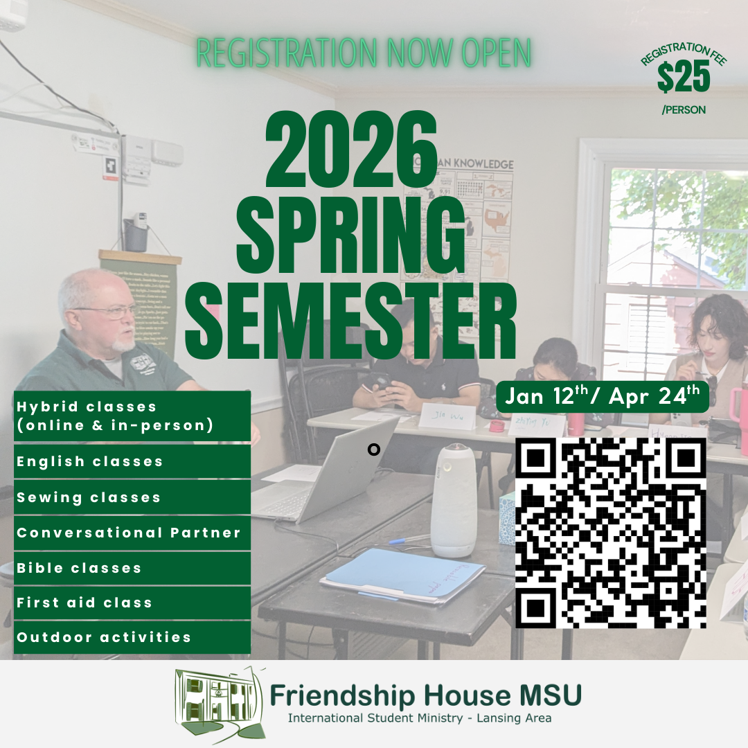 MSU International students, scholars and family members are invited to register for new classes at Friendship House MSU.