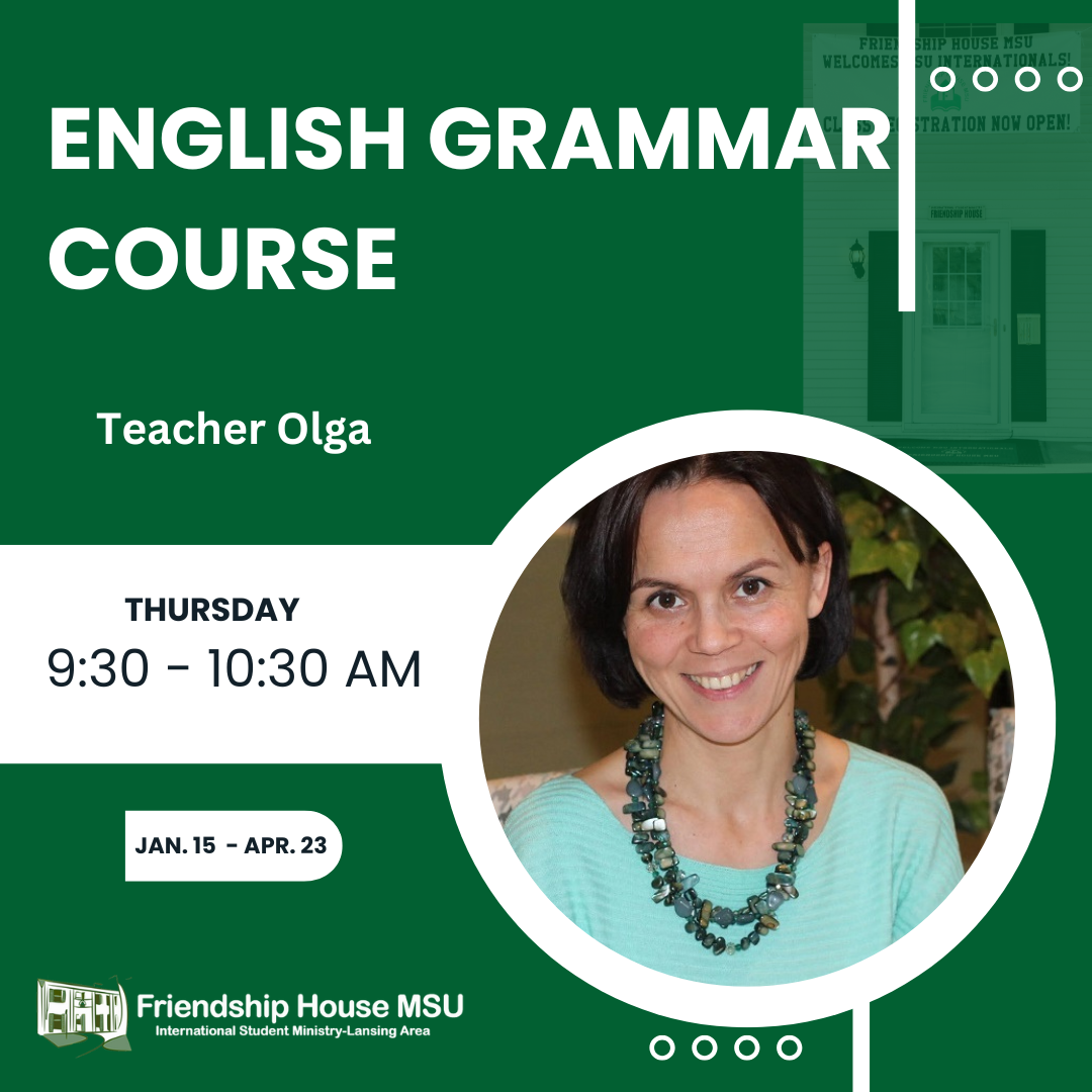 English Grammar Course Teacher: Olga Sikstel Teacher Olga has five years of experience teaching English before beginning her MSW and PhD journey here at MSU, and [...]